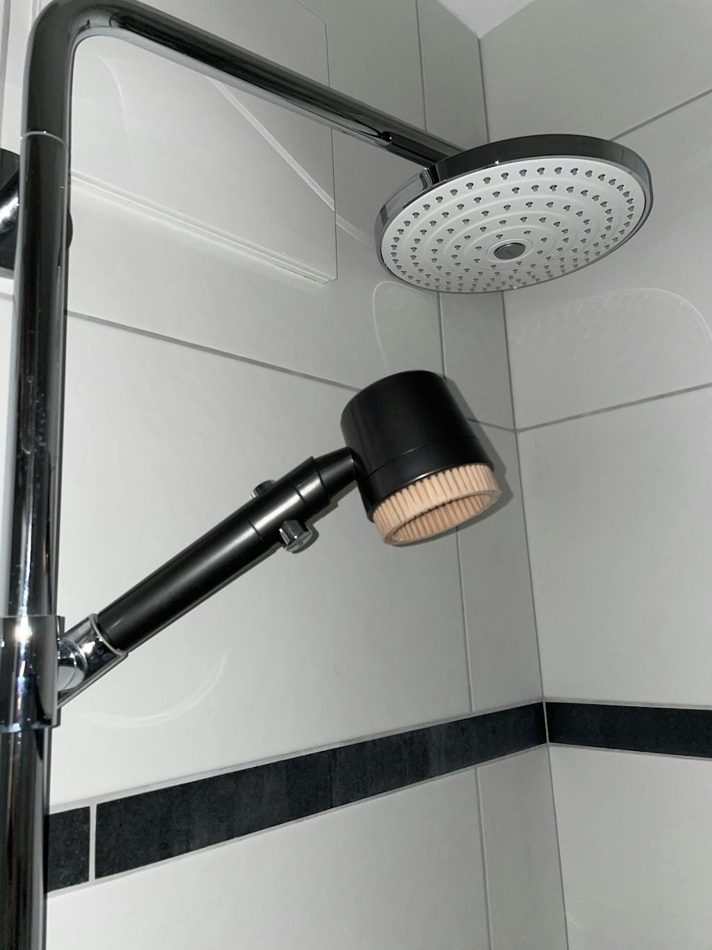 Die integrierte Massagebürste des HydroGlow AquaZen™ erreicht mühelos schwer zugängliche Stellen wie Rücken und Schultern ganz ohne Duschschwamm.